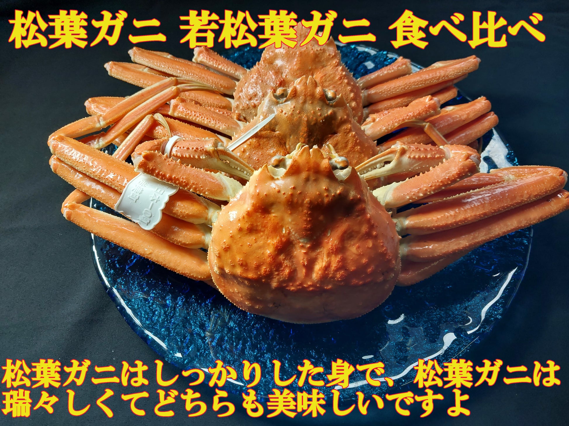 しっかり味の松葉ガニと少し大きな若松葉ガニの姿茹で2枚の食べ比べセットです